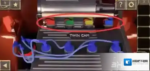 放上零件和电线,根据蓝色车的车灯颜色提示调整按钮,车门开后,得到车辆逃脱。