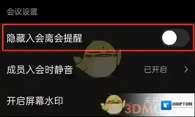 4、在设置页面,将隐藏入会离会提醒功能关闭即可。