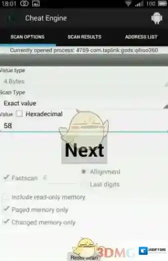 6、比如艾希的攻击力为58,我打开ce搜索58,数据类型默认为4字节,搜索类型为精确搜索,然后得到