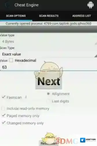 7、接着我给他装上了一个加攻击力的衣服,攻击力变成了63,我就把58改成63点next.得到2个数据