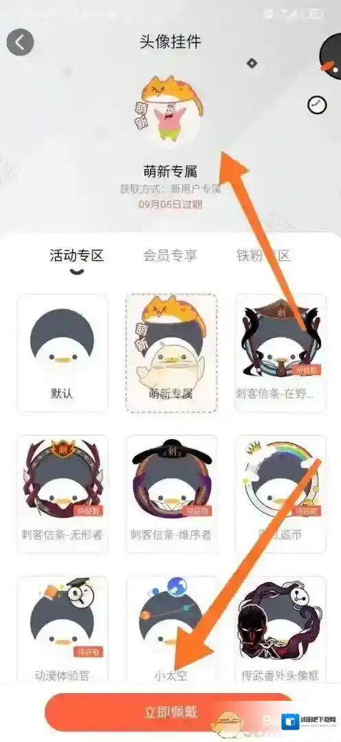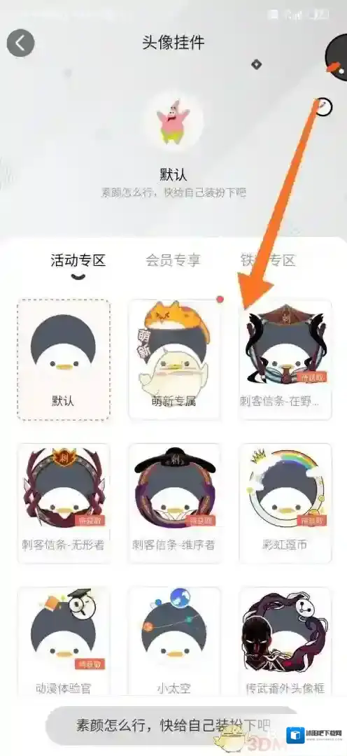 5、软件提供很多以动漫为原型的头像框,也可以进入铁粉专区挑选,我们自由挑选一个;
