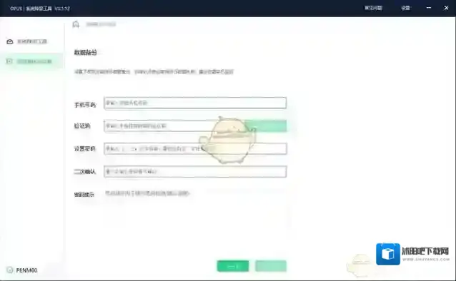 7、在数据备份界面填写手机号码、验证码、密码、密码提示,并点击“下一步”。