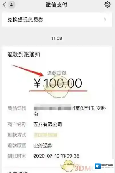 5、下架安居客房源后,微信即可收到安居客退款到账通知,如下图所示: