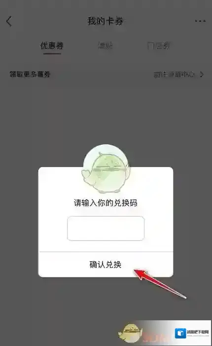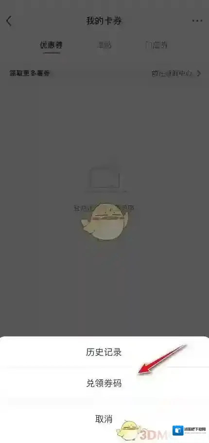 4、最后在下方弹出的窗口中选择对领券码,输入兑换码,点击确认兑换即可。