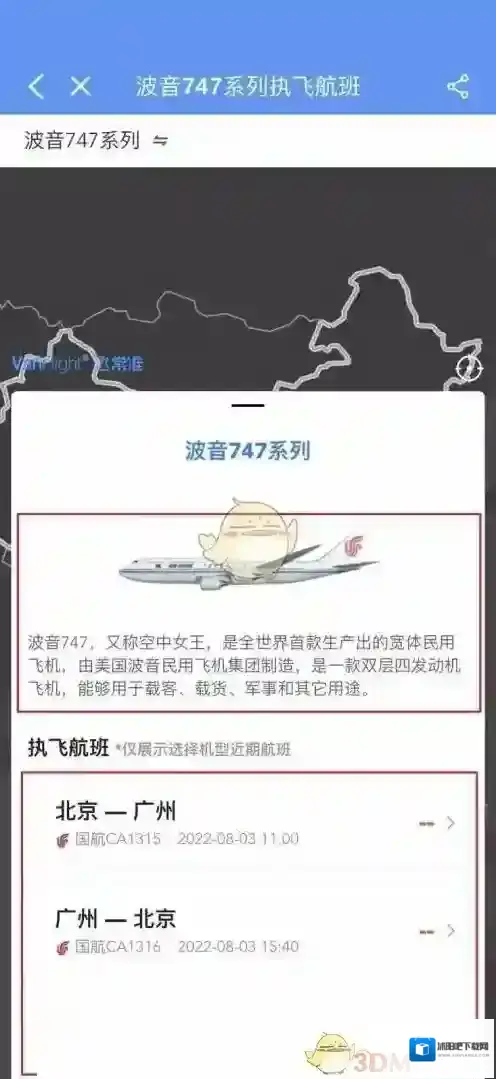 5、最后界面跳转后,可以看到波音747机型的信息介绍,说明查询成功。