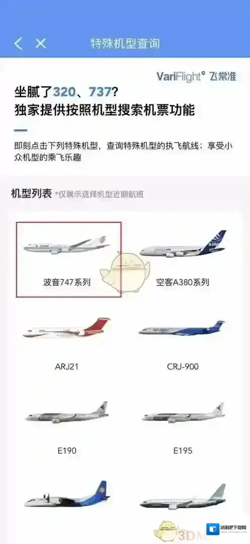 4、接着进入特殊机型查询界面,点击波音747系列;