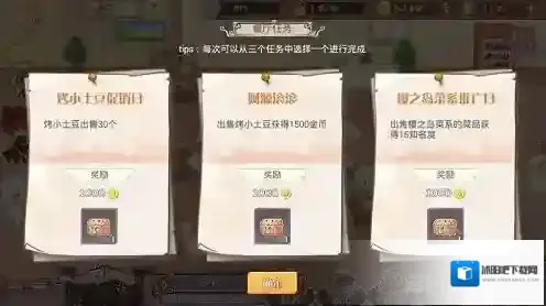 每次会随机刷新3个任务,完成对应任务可以获得金币和对应的宝箱奖励