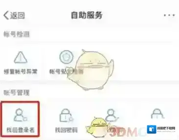 5、最后在自主服务页面找到找回登录名点击,按照页面提示操作即可。