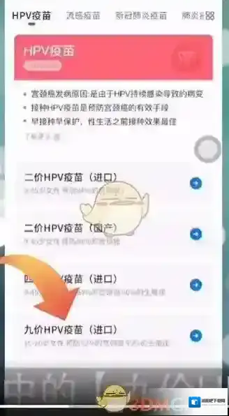 2、进入到疫苗列表界面后,点击界面中的九价HPV疫苗。