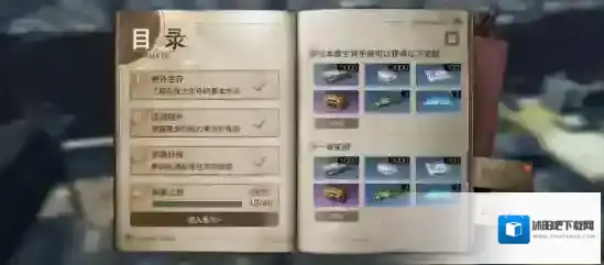 进入游戏后,点击“生存手册”,完成不同章节任务,可以获得20个、30个、50个、100个等数量的配方残页。