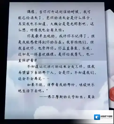 然后我们看到了莫朵人格给方时人格留下的一封信,我们可以看出来莫朵最喜欢的就是正直、善良、勇敢的方时人格,这个人格给了莫朵走下去的勇气,莫朵也希望最后留下来的是方时这个人格,真的看着很感动,莫朵这个小天使,就是这个世界唯一的光和希望。