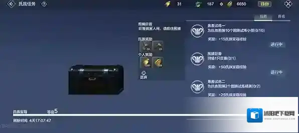 点击氏族任务每天进行接取氏族,注意的是这个任务要每天自己进行接取,可获得400贡献度。