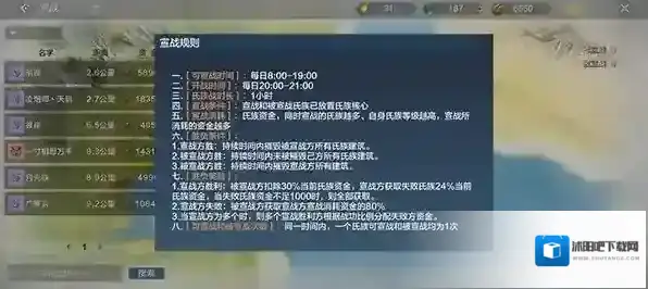 氏族可以向其他氏族宣战,获得胜利的氏族可以获得其他氏族的资金,失败的氏族将会被扣除氏族资金,参与氏族战的成员也会获得奖励。