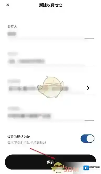 4、输入姓名,电话,地区,详细地址,点击保存按钮。