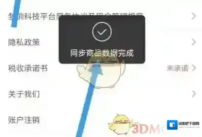 5、来到设置,点击同步商品数据然后弹出同步商品数据完成。