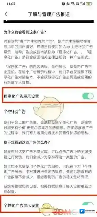 4、最后点击过后在广告设置的页面中点击关闭程序化/个性化广告展示设置功能即可。