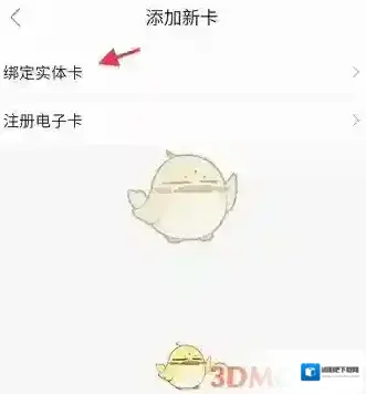 5、进入添加新卡,点击下方的绑定实体卡进入
