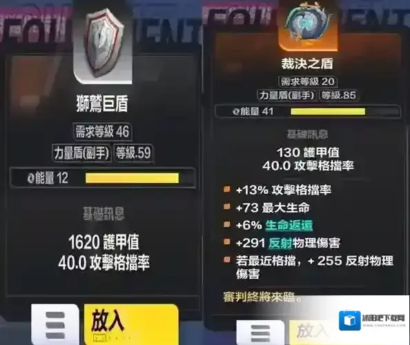 另外值得一提的是,装备能量的上限以及消耗总量是看装备等级的,以上图说明左边物等59的盾牌能量赋能消耗为2颗核心,但上限仅到15,而右边85物等的盾牌赋能则需要消耗10颗核心,但上限高达61,但也不必因此而不洗练低等的装备,如开技能栏位有必须,稍微洗一下还是比较舒服的,等到后期换上高物等装备之后再追求更高的能量值即可。
