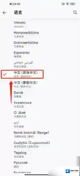 4、进入语言窗口,勾选中文(简体中文)。