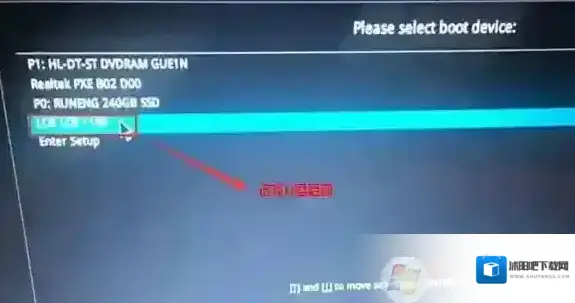 3、插入U盘启动盘,重启按ESC选择识别到U盘启动项,回车;