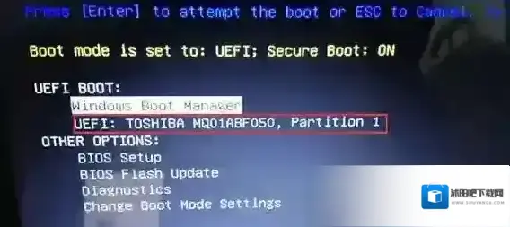 6、插入U盘启动盘,重启时不停的按下f12,打开快速引导菜单,选择识别的U盘启动回车从U盘启动,如下图所示;