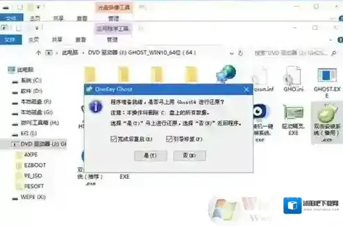 8、鼠标左键双击双击安装系统.exe,运行安装工具,我们选择还原分区,GHO WIM ISO映像路径会自动提取到win10.gho,接着我们选择安装位置,一般是C盘,或者根据卷标或总大小来判断,选择之后,我们点击确定;