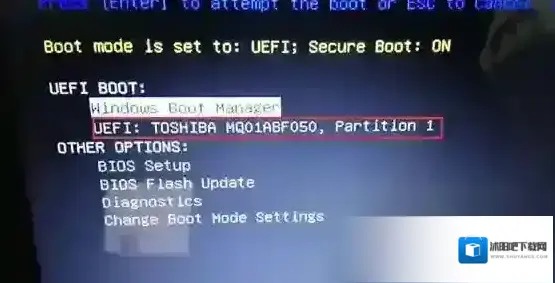 6、插入U盘启动盘,重启时不停的按下f12,打开快速引导菜单,选择识别的U盘启动回车从U盘启动,如下图所示;