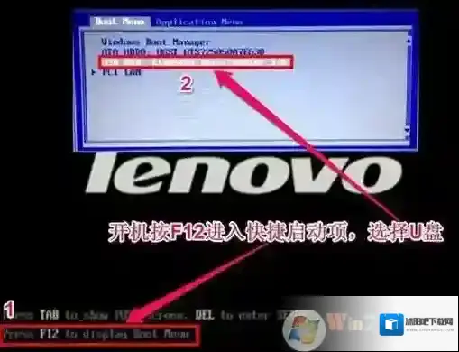 5、保存设置后自动重启进入LOGO画面时,一直按F12,选择U盘启动,如下图所示;