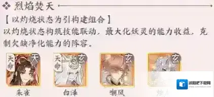 搭配思路:搭配能为敌方高频施加灼烧状态的妖灵来强化自身输出