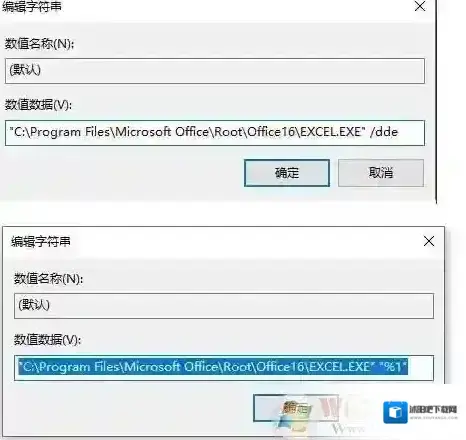 4. 将数值数据中最后的 /dde 修改为 “%1” 后确定 (注意”%1″和前面之间有空格,双引号是英文状态的) ,如下图:如下图,上面是修改前,下面是修改后。