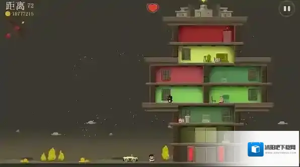 楼层里还有一些被绑架的人质,主角接触到他们以后就可以解救他们从而获取额外的金币,在普通的关卡里外星人身上会有一把钥匙,主角拿到钥匙来到楼顶,即可将他们的基地大楼摧毁,从而进入到下一关。