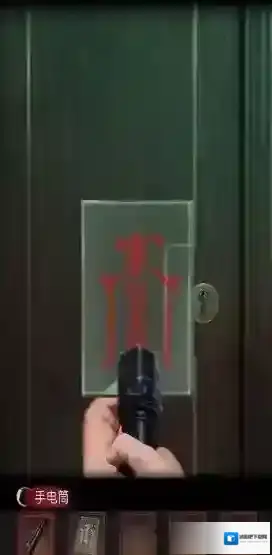 14. 临摹完符后,来到左边的房间门口,点击玻璃符,然后点击手电筒,注意!要点击到到符才可以,点击到房门其他地方好像是感应不到的(楼主就是吃了这个亏呜呜呜呜)