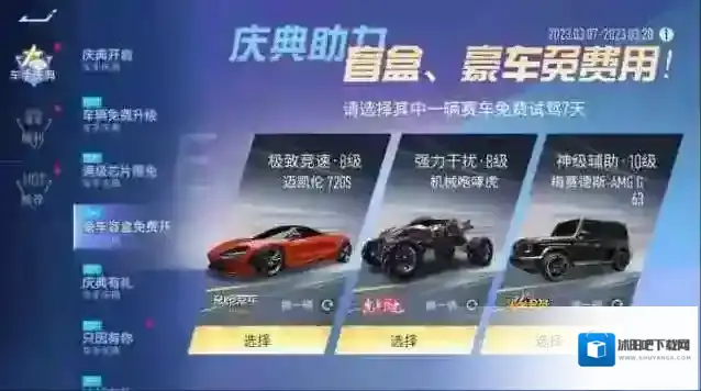 6、『豪车免费开』3月7日~3月20日,参与活动即可试驾8级盲盒车、豪车(7天),有机会试驾闪灵、哈迪斯、隐匿猎手等热门车哦~