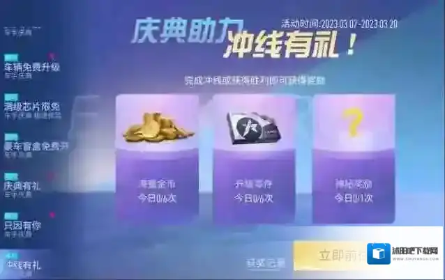2、『庆典有礼』车手齐聚,登录有礼。3月7日~3月20日,登录游戏即可领取“十连采购券”,累计登录还有外观币、盲盒券、万能零件、礼品点、传说蓝图碎片等好礼相送!