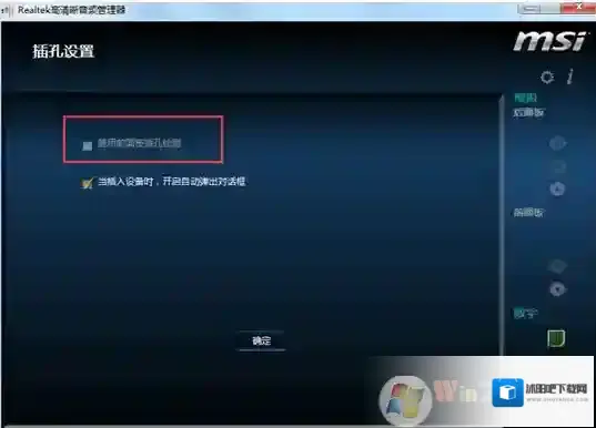 6、勾选”禁用前面板设置时检测“,点确定退出。然后就可以同时用音箱和耳机了,开关音箱,耳机都有声音