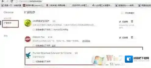 3、在设置界面中选择扩展程序,将里面的迅雷启用就可以了。