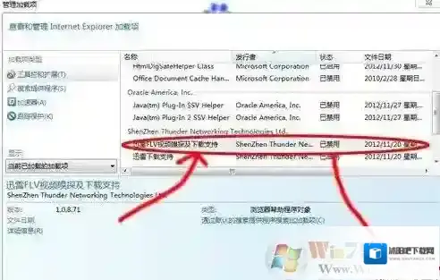 第四步,启用迅雷嗅探和下载支持。进入加载项界面后,找到迅雷的相关选项,如果你的迅雷不能自动监视下载的话一定是关闭了相关的插件,找到迅雷下载支持和迅雷视频嗅探后启用即可。这时再去下载资源时迅雷就会主动地帮你下载了
