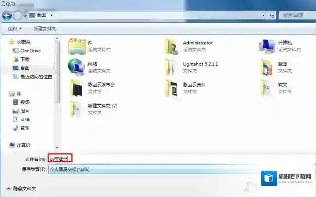 6、点击浏览选择存储路径,然后将文件名修改位加密证书