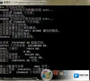 待电脑完成5个阶段的移动硬盘修复以后,我们就可以看到调试框中出现“Windows 已更正文件系统”的字样,如图所示。