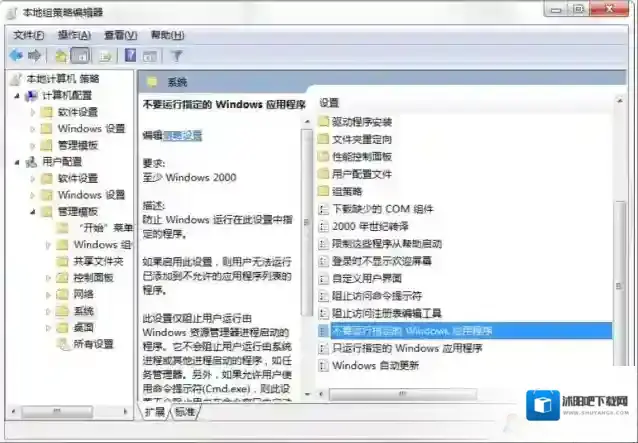 5、接下来,我们还要设置一个项目,找到“不要运行指定的Windows应用程序”,双击打开设置;
