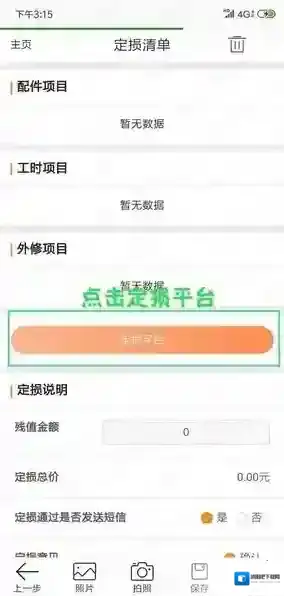 上传完照片后,进入下一步“定损平台”,开始配件、工时项目录入。