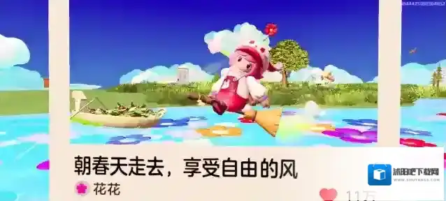 下一秒星妹就来到了梦境中五彩斑斓的花海秘境,甚至脚下的路都是由花瓣组成的!淡蓝色的河水中铺就着密密麻麻的花朵,河流中间有可以由星宝自己驾驶的小船。乘船靠岸,岸边还有可以自由挪动位置的ins风打卡拍照框供星宝们使用。星妹使用骑着魔法扫帚的动作,留下一张准备向春天飞去的“人生照片”!