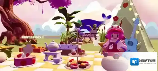 路过已经被时代淘汰的蓝屏大电脑,喝掉饮料缩小身体,进入小红房内部,星妹就掉进了第二层梦境!这里的景象更加奇妙,巨大蘑菇伫立在树林间,茶壶吐露出粉色的河水。荒诞的小人在路旁舞动,是蘑菇导致的幻觉吗?世界乱套我拍照!站在左侧河岸上看镜头,可以把树木、河流、蘑菇和小人统统框进画面里~