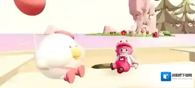 记录下美丽瞬间之后,继续前行吧~视角突变,顺着地图指引,星妹看到了由一大片粉色河流构成的区域。坐上粉色河流上Toby驾驶的小船,星妹当然要和她合影!