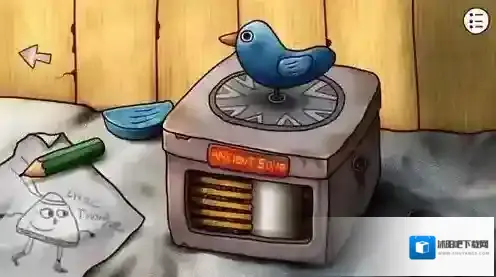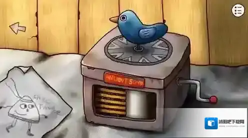 你拿起了铅笔和蓝色石块。看到八音盒,想到刚才小男孩说的动听旋律,你也有些想欣赏,可惜你怎么点击都没有反应,这时你注意到了音乐盒右边的小孔,想到灯塔二楼排气扇取出的摇杆。莫非?(点击摇杆点击八音盒右侧的孔洞使用)