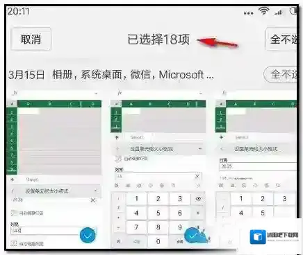 勾选要发送给微信好友或微信群的图片;如果是所有图片都要发送就点击“全选”;即全部图片选中。全部图片选中一共有18项,即18张图片。