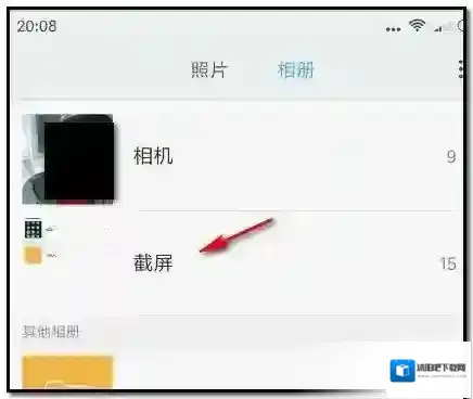 翻到另一个页面;在页面的上方再点击“相册”;再转到另一个页面;在这个页面中,如果发送的图片是用手机相机拍摄的就点击“相机”;图片是手机截图的,就点击“截图”;小编在这里点击“截图”。