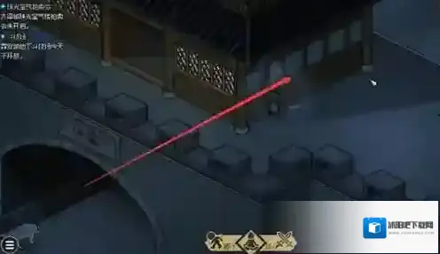 1、进入镖局后沿着路线一直走可以到达前方的卧房。