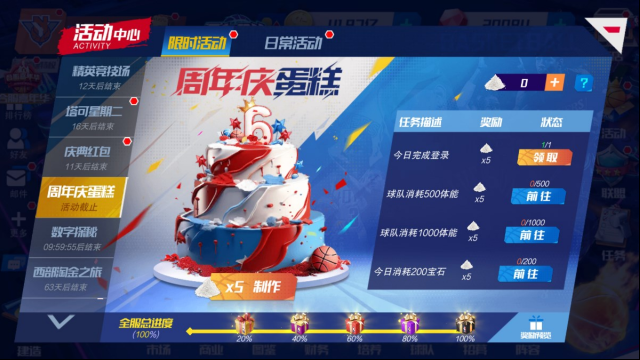 完成任务,获取蛋糕原料,和全服玩家一起制作6周年专属的庆典蛋糕,获取巨星招募函、6周年限定称号等丰厚奖励!