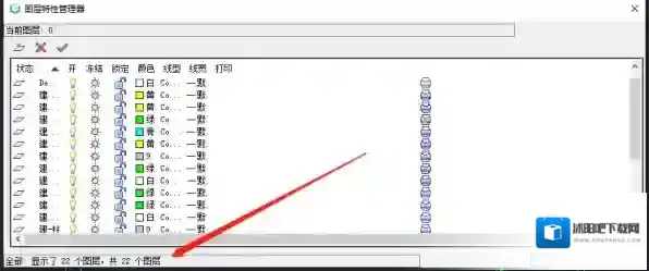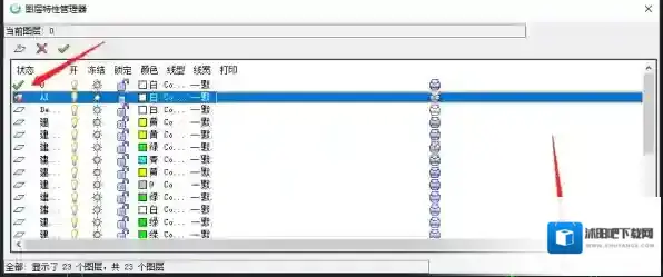 2. 在跳出的图层特性管理器对话框中,找到并选中需要删除的CAD图层,点击列表上方的红色X按钮。
